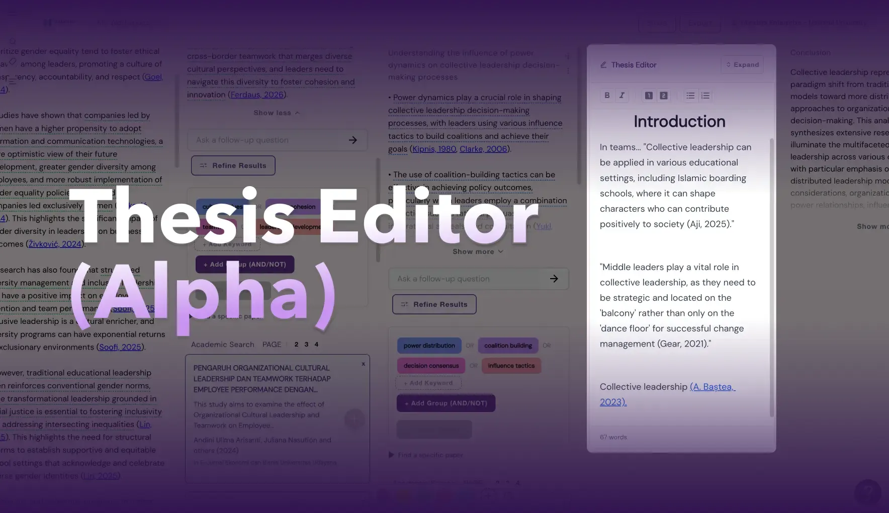 Excited to announce this our latest core feature update — Thesis Editor. This is a major step to fulfilling a complete academic workflow. With the Thesis Editor you can start your research in Wonders and finish your Draft, with full citations, highlights, and supervisor access all in one place. Goodbye Zotero, Word, GoogleScholar and 47 tabs!