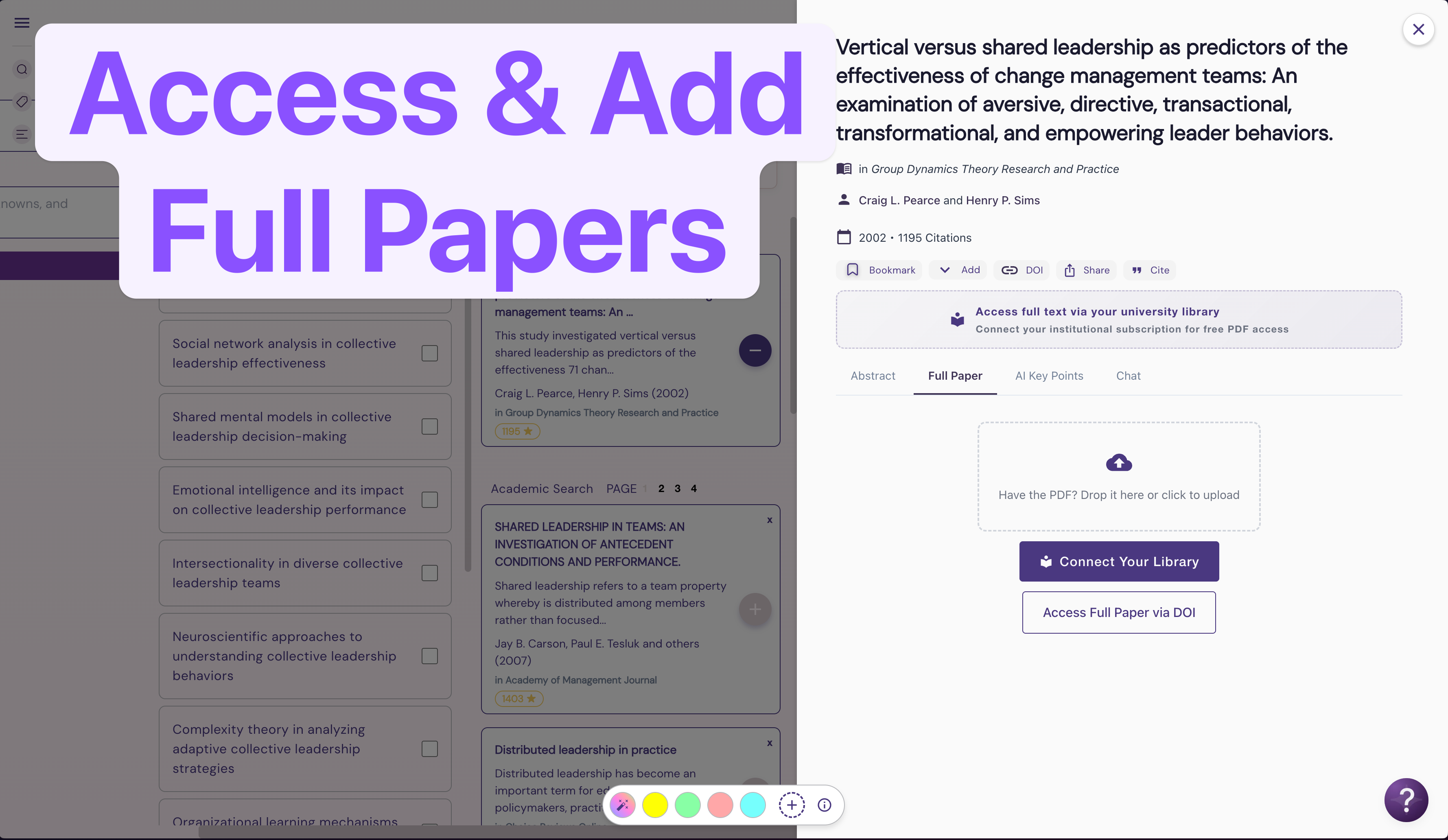 NB: We’re aware that there are different systems for accessing paid library resources and we’re working on supporting more providers. If your system isn’t supported yet—please use the PDF upload feature for now.